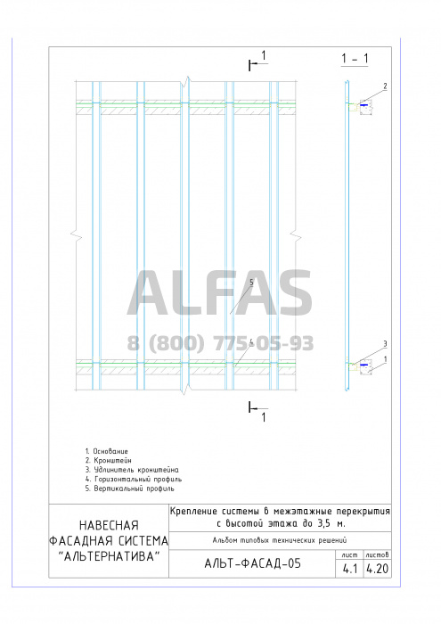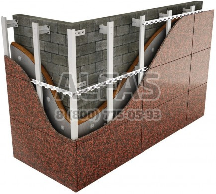 В системе крепления Альт-фасад 05 используются шины, благодаря которым на систему можно монтировать плиты из искусственного камня.